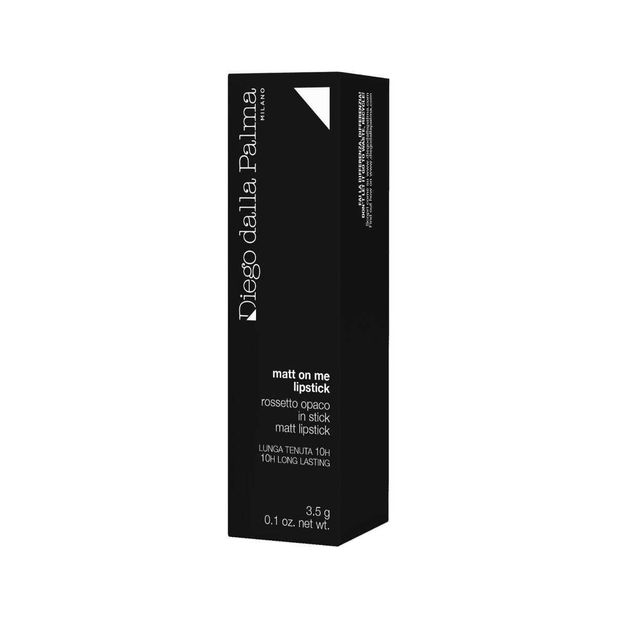 Matt On Me, rossetto in stick dal finish opaco e declinato in tre tonalità dai colori intensi e vibranti. Una texture, morbida e cremosa, che rende l’applicazione sulle labbra particolarmente confortevole e sensoriale, regala alle labbra un effetto setoso dal colore “pieno” e sensuale. Lo stick scorre rapidamente e con facilità sulle labbra creando un film “one stroke” per un make-up adatto ad ogni occasione. Tre rossetti eleganti e raffinati e che grazie alla loro straordinaria tenuta permettono di mantenere un look impeccabile fino a 10 ore